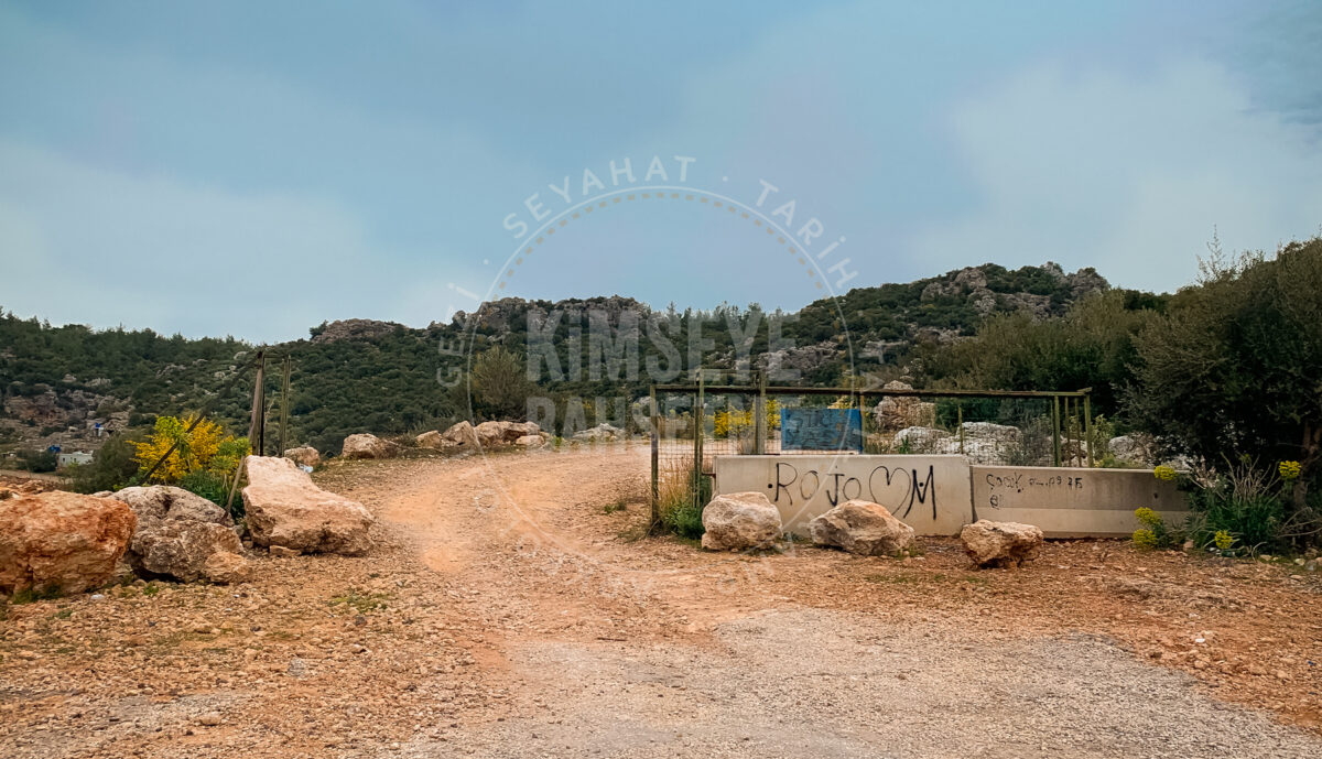 Daha sonra yola devam ettiğinizde “Giriş Yasak” yazan sürgülü kapıyı göreceksiniz. Google haritalardaki görsellerde kapı kapalı ve arabayı bırakıp yürümeniz gerektiği söyleniyor ama bu bilgi eski. Mart 2026 itibariyle ben gittiğimde sürgülü kapı açıktı ve arabalarda antik kente kadar çıkıyordu. Yolu biraz tozlu ve toprak bir yol zaman zaman bu kapıyı geçtikten sonra bozuk bir yolla karşılaşsanızda genel olarak idare eder bir yol ama motosiklet veya başka bir araçla gelecekseniz bir önceki gece yağmur yağmadığından emin olun çünkü toprak yolun çamurlu yola dönüşme riski var ve bu durum çıkışı ve inişi hayli zorlaştırabilir. Bu kapıdan itibaren asfalt yol bitiyor ve toprak taşlı zor yol başlıyor. Daha kötü durumda olan bu yol bittiğinde ise tebrikler Antik Kente ulaştınız. Girişte ise herhangi bir gişe veya ücret isteyen bir görevli bulunmuyor. Aslında mekanın tamamında hiçbir görevli göremedim.