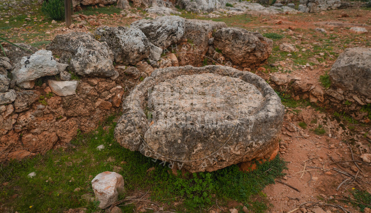 Devam ettikçe antik odacıklar ve bina benzeri yapılar geliyor, bunların birçoğunun içerisinde yukarda gördüğünüz halka şeklinde kenarı oyulmuş taşlar var, bunlar öğrendiğimiz kadarıyla antik dönemde zeytinlerin presslenip suyunun/yağının çıkartılıp etraftaki çizgilerden ön kısmındaki yerden akması sağlanıyormuş. Antik zeytinyağı üretim teknolojisinin en temel parçası olan bu yassı ve dairesel formdaki taşlar, arkeoloji literatüründe “pres yatağı” veya “kırma tablası” (Latince: mola olearia) olarak adlandırılır. Lyrboton Kome gibi yoğun üretim merkezlerinde bu taşlar, zeytinin fiziksel olarak yağa dönüştürüldüğü mekanizmanın merkezini oluşturur. Genellikle yerel kireçtaşından oyulan bu dairesel blokların kenarlarında görülen halka şeklindeki kanallar, baskı sırasında süzülen yağın çevreye yayılmasını önlemek ve akışını belirli bir toplama haznesine (küp veya sarnıca) yönlendirmek amacıyla tasarlanmış tahliye yollarıdır. Bu pres taşlarının kullanım prensibi, mekanik bir baskı ve yerçekimi sistemine dayanır. Hasat edilen zeytinler önce kırılarak hamur haline getirilir; ardından bu hamur, bitkisel liflerden örülmüş torbalara (faskia) doldurulur ve pres yatağının üzerine üst üste dizilir. Üstten uygulanan dikey baskı (genellikle bir kaldıraç kolu veya ağırlık sistemiyle) sonucunda torbalardan sızan saf zeytinyağı, taşın üzerindeki dairesel kanaldan akarak toplama çukuruna ulaşır. Bu düzenekler, antik dönem mühendisliğinin doğayı ve fizik kurallarını ne kadar verimli kullandığının bir göstergesi olup, günümüzdeki hidrolik pres sistemlerinin en ilkel ve işlevsel atası sayılmaktadır.